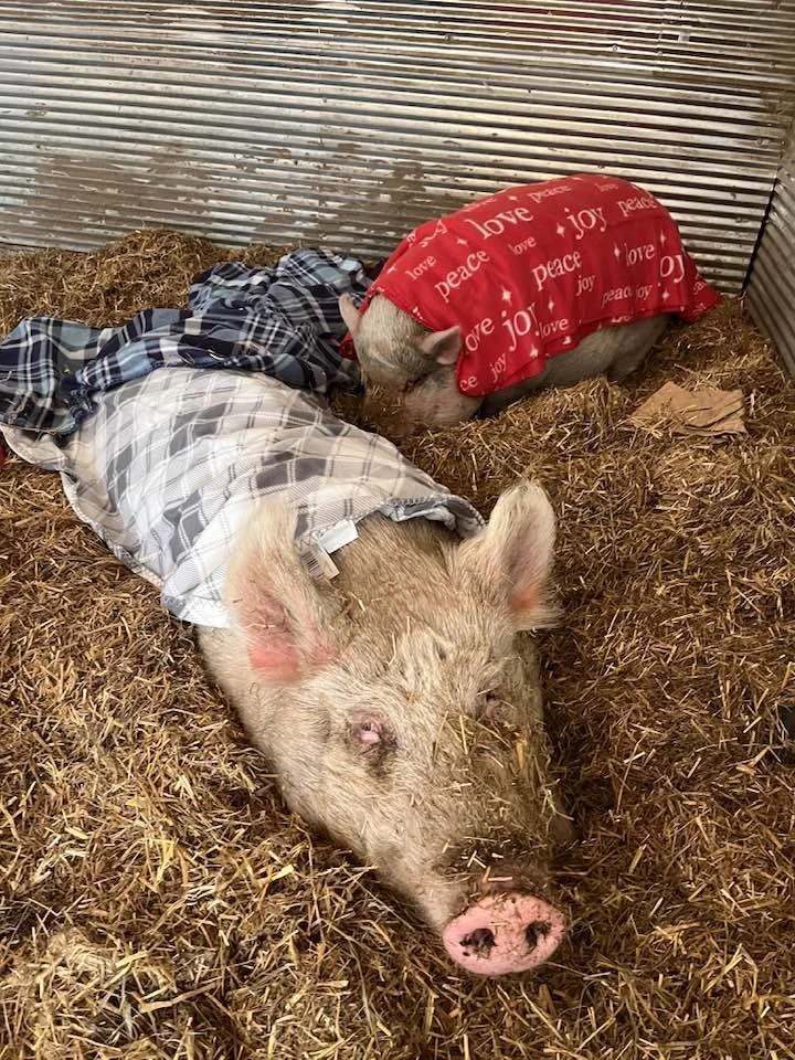 Sadly, at Unity Farm Sanctuary in Massachusetts, there are quite a few animals who exemplify how past trauma still impacts them, years later: ‘One is a tiny miniature horse who had been abused and arrived here fearful and stressed, on top of being partly blind. No one could touch him, and after 5 years he is calmer but still will not permit a human to initiate touch. We sit quietly and read to him, and he will sometimes initiate touch. He lives in our Healing Haven Barn, and the quiet there helps him. Another rescue who shows signs of past trauma is George the Minipig. He was a house pig living with a young woman and her husband, but his house burned down! He was rescued in the nick of time by firefighters, but he lost his tail in the fire. The house was a total loss, but once the local animal control returned George to the young woman, he was made to live in the burned-out basement for months. The husband of the woman left her, plus the house was uninsured so it was not rebuilt. And as winter approached, he could not live in the house further. Sadly, after he moved to our sanctuary, the young woman never visited George. Pigs are smart and emotionally bonded, and he still shows signs of this emotional upheaval.’